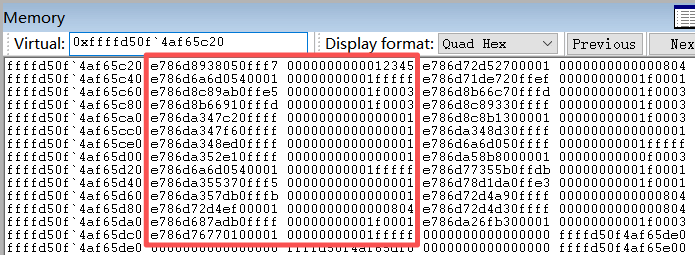 这些e开头的数据就是解密前的数据, 这些都是一个个_HANDLE_TABLE_ENTRY