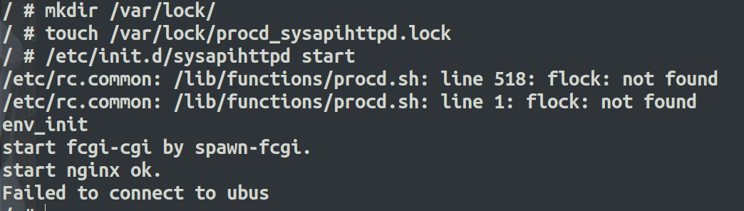首先,报错缺失/var/lock/procd_sysapihttpd.lock这个文件,这个创建一下对应的目录和文件就行了。