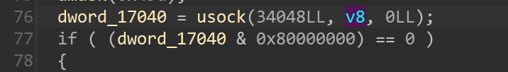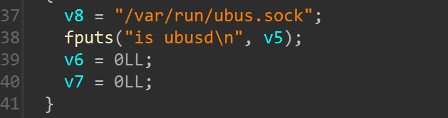 很容易定位到sub_20B0函数,我们执行的是ubusd,而不是它的软链接tbusd,因此v8会是路径/var/run/ubus.sock,接着其作为参数传入usock函数中,当usock函数的返回值错误时,就会走到perror("usock")报错。