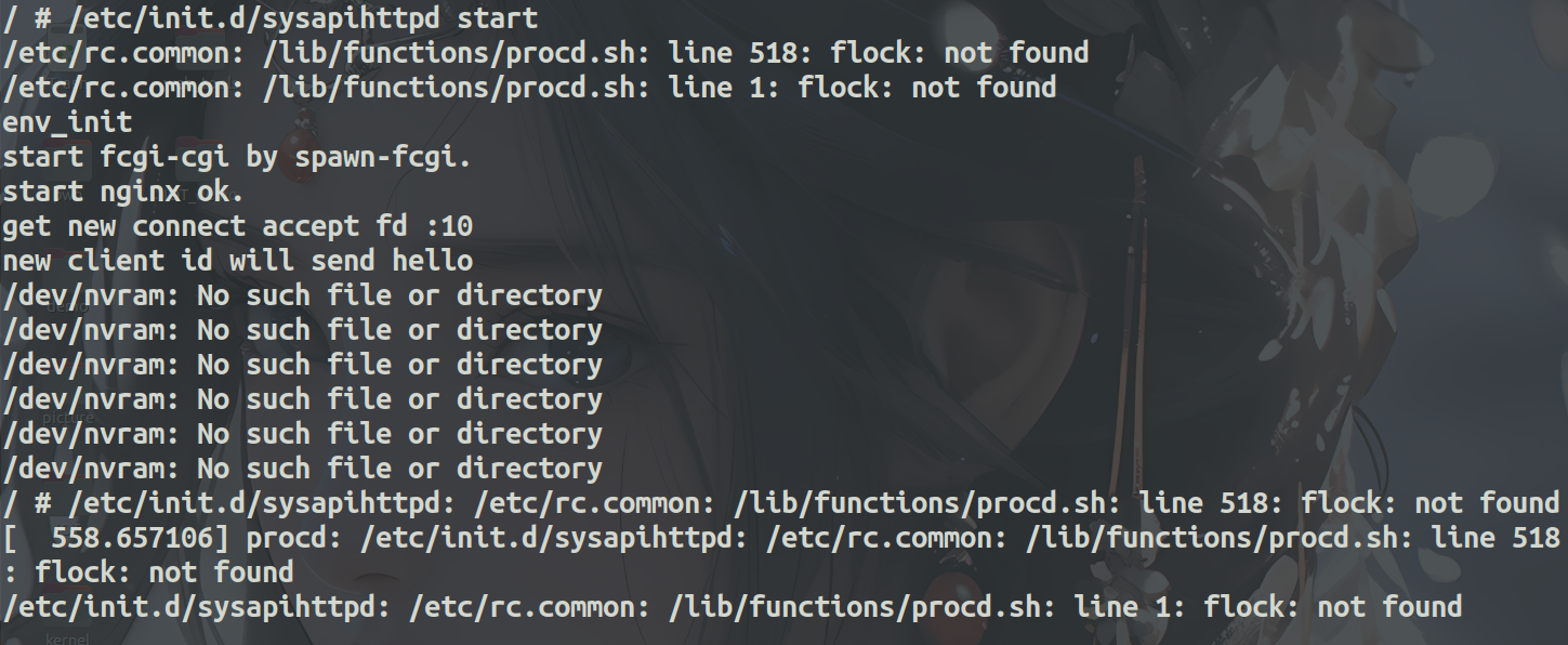 然后看看进程,发现该有的都有了就差个sysapihttpd.所以我就直接执行/usr/sbin/sysapihttpd试试