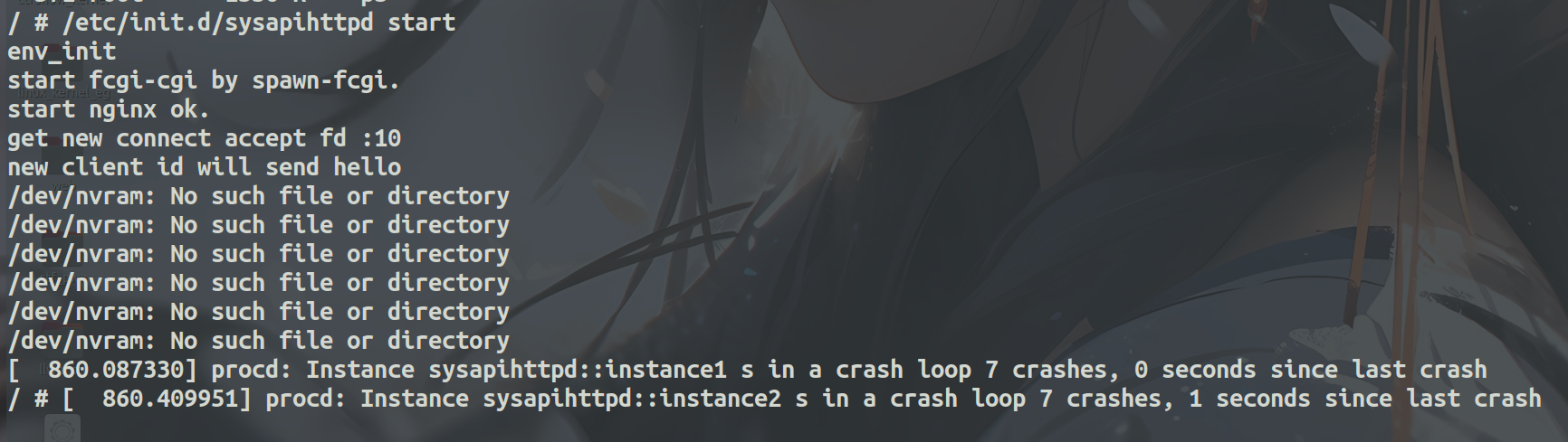 然后这里还会sysapihttpd 启动后立刻崩溃,并被procd 判定为“崩溃循环(crash loop)”