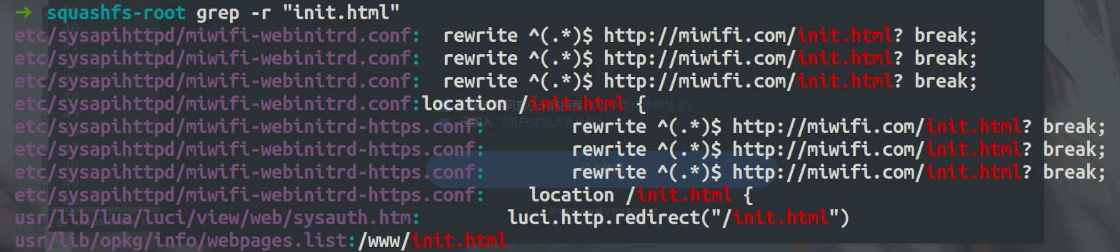 我们通过grep在固件文件系统中查找是在哪里重定向至/init.html的,很容易定位到/usr/lib/lua/luci/view/web/sysauth.htm文件: