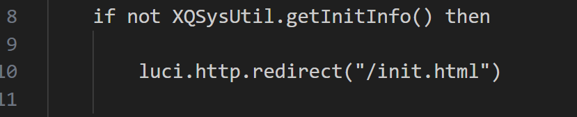其内容如下,如果要跳过初始化配置,我们这里还是更优雅地想办法去满足这个if判断的条件,使之不重定向至/init.html。