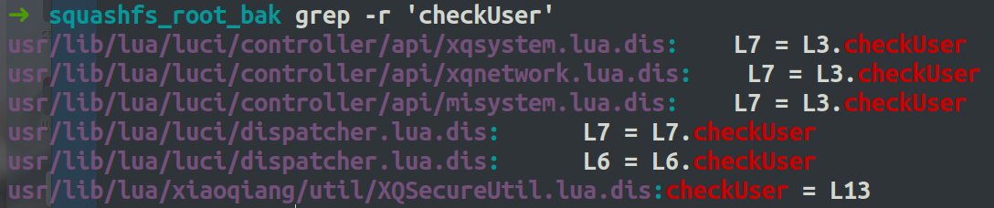 我们先去看看身份校验的文件用grep查找一下很多设备几乎都是checkuser,只不过是有些大小写的区别罢了.