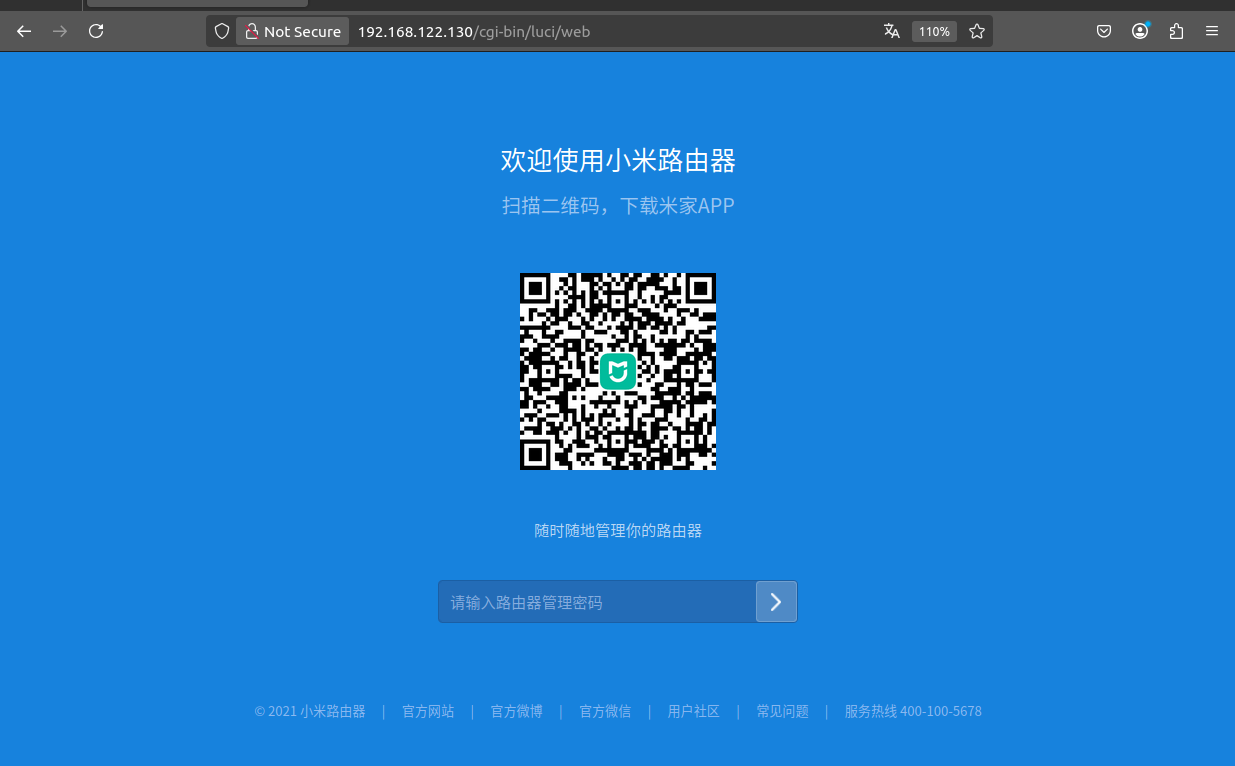 uci set设置后,再次访问IP,即可绕过初始化配置,跳转至登录页面: