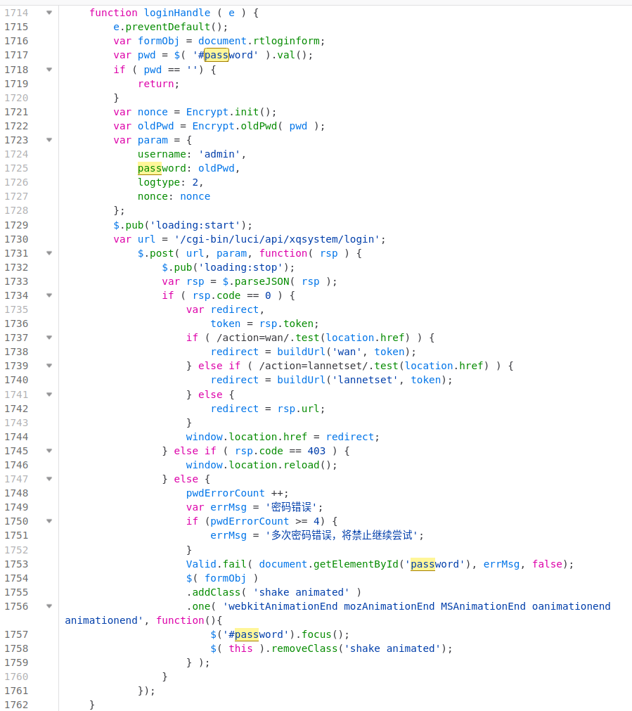第二处如下,先调用Encrypt.init()对nonce进行初始化,然后对用户输入的passwod进行处理,用oldPwd进行处理后把password和其它参数拼接好后传给Lua文件进行处理(也就是传给usr\lib\lua\luci\controller\api\xqsystem.lua中的login函数处理)。