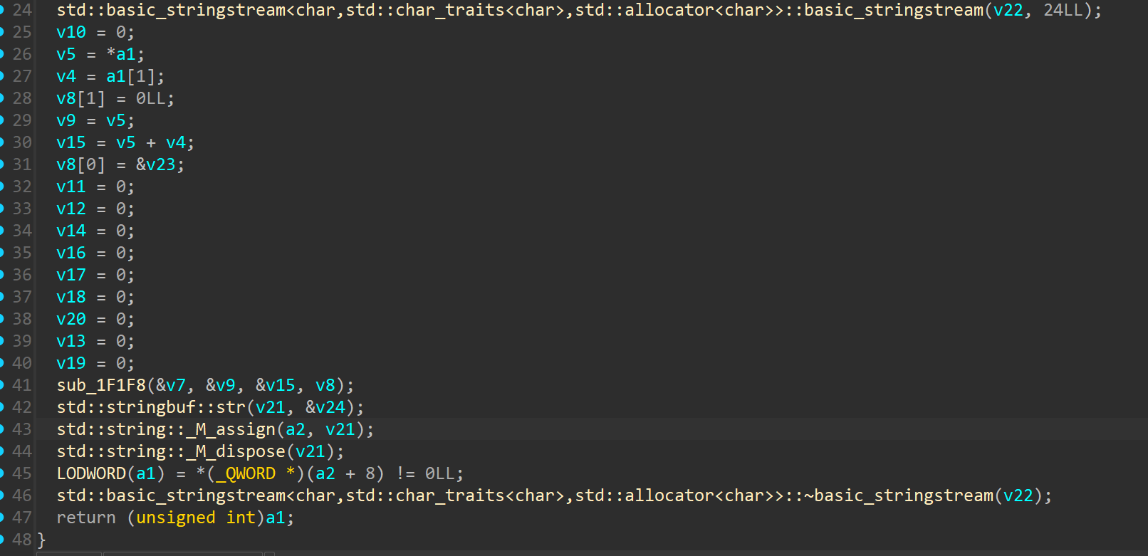 std::string::_M_dispose(v41); //清理地址字符串