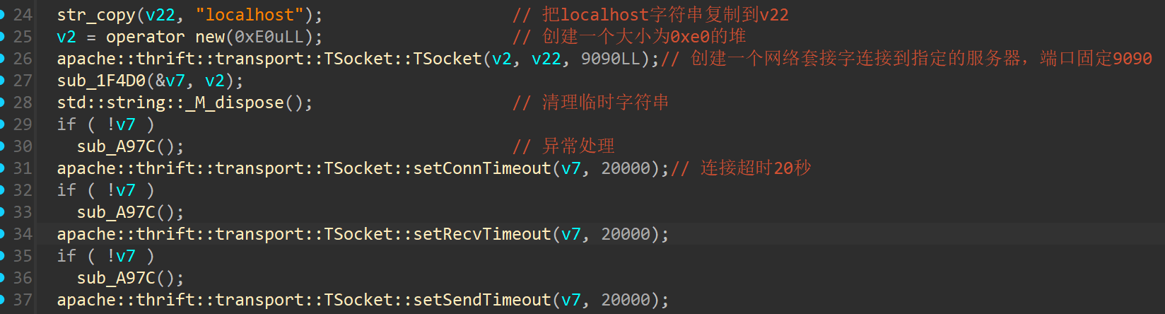 }上述程序会一直监听9090端口发来的数据,因为在thrifttunnel程序中会调用request向datacenter发送请求。