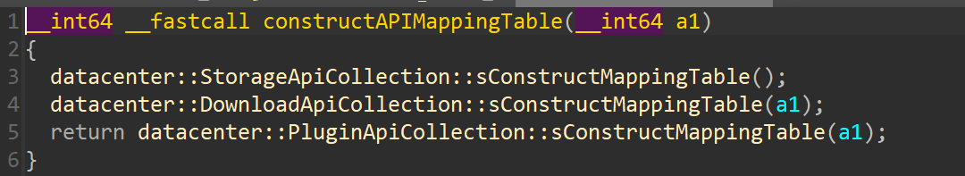 当我们点进去可以看到又有个datacenter::PluginApiMappingExtendCollection::sConstructMappingTable,又因为我们传入的api为629,如下图没有该api值,因此我们再次点进去查看一下。