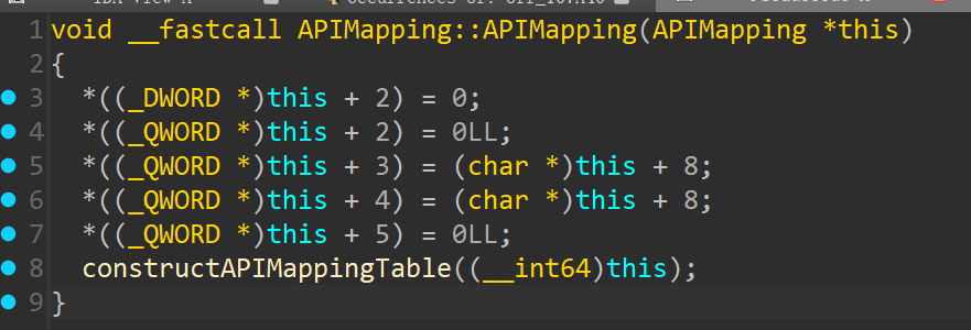在APIMapping::APIMapping中又会调用constructAPIMappingTable函数初始化构建API。