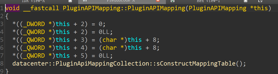 其实这三个函数都是存储大量API服务的函数映射表。这里直接按照winmt 师傅所说的直接定位漏洞位置datacenter::PluginApiCollection::sConstructMappingTable。