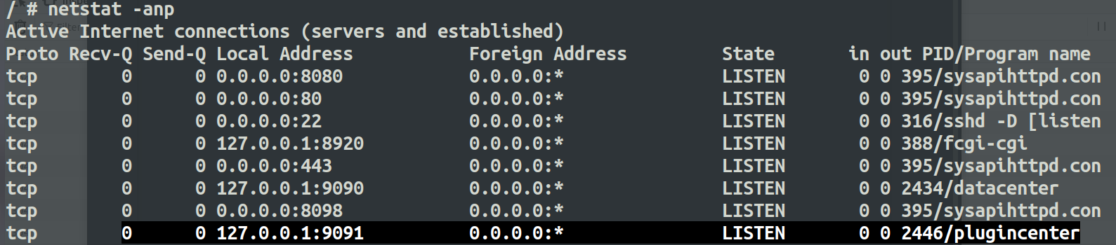 下面是plugincenter程序在监听9091端口。