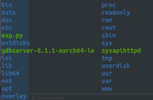 scp -r ../squashfs-root zikh@192.168.122.130:/home/zikh/ 密码:root 然后在qemu的root目录下里面执行: mv /home/zikh/squashfs-root/ ./squashfs-root cd squashfs-root/ chmod -R 777 ./ mount --bind /proc proc mount --bind /dev dev chroot . /bin/sh