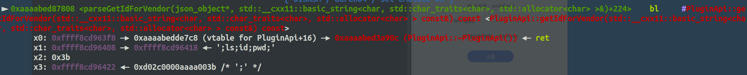 然后断点可以下在PluginApi::getIdForVendor(v9, v7, v8);处看看。