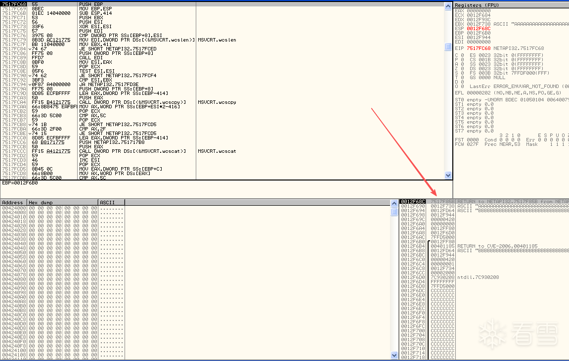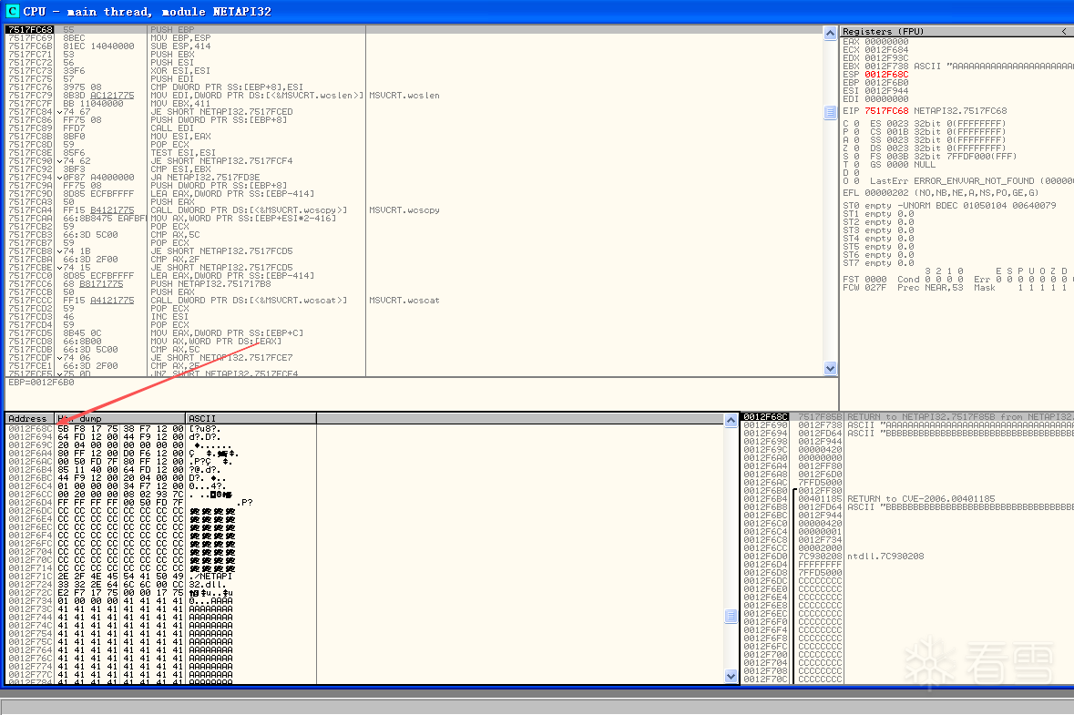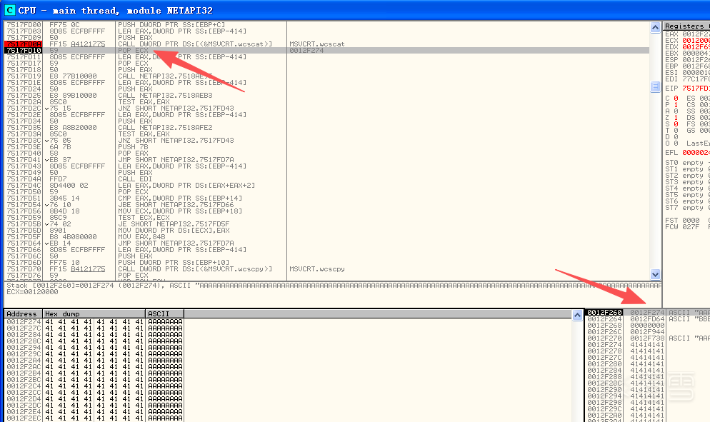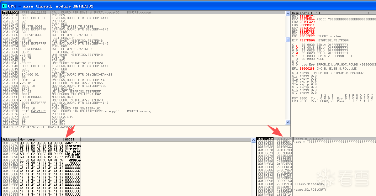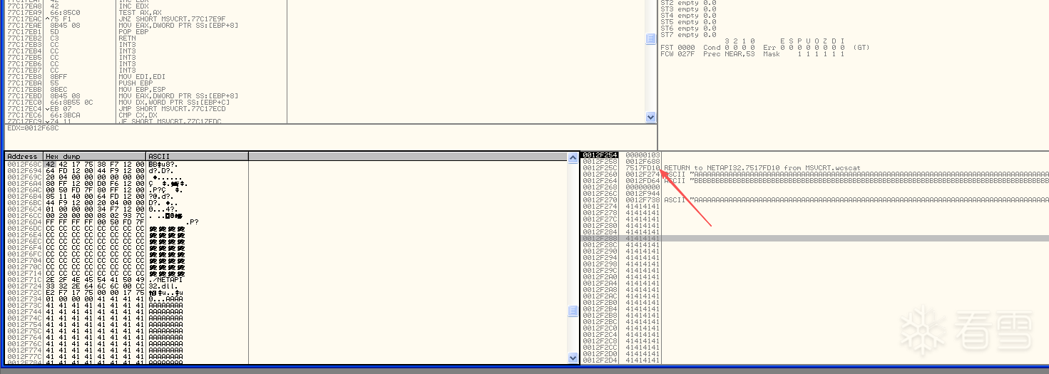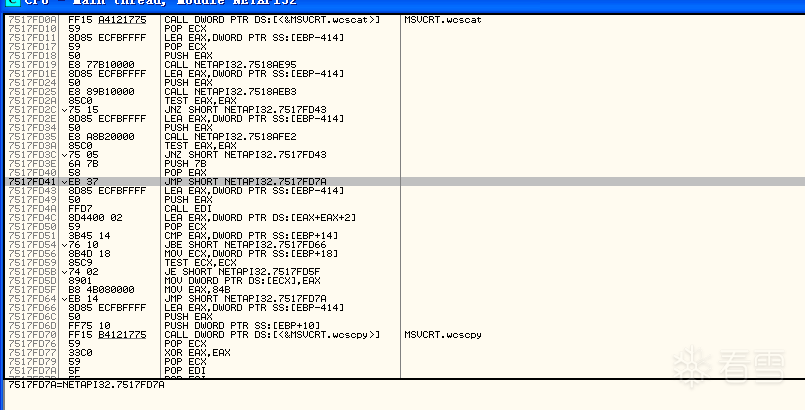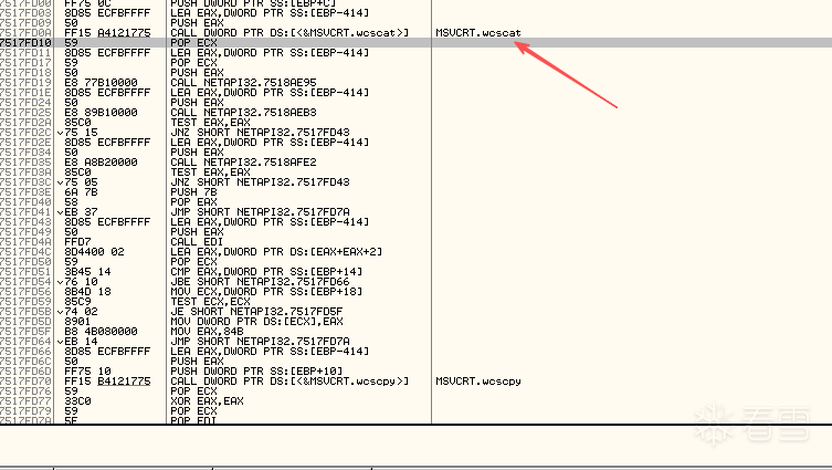 0012F254 00000103 0012F258 0012F688 0012F25C 7517FD10 RETURN to NETAPI32.7517FD10 from MSVCRT.wcscat