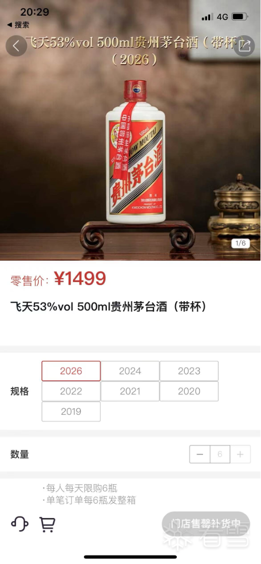 i 茅台上进入飞天茅台的抢购页面,发现购买按钮是灰色的: