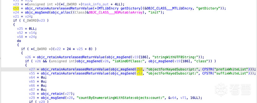 发现是通过 【MTLibEncry getDictory’】返回的前缀和后缀信息在做匹配判断。