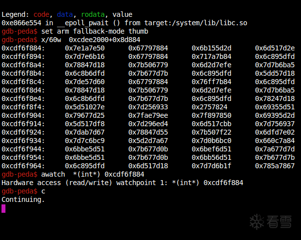 未解决 [求助]gdb远程调试app,awatch硬件断点不成功 100雪币