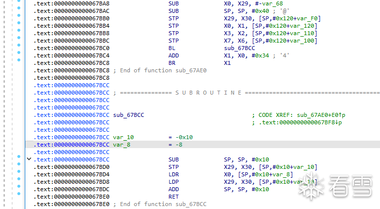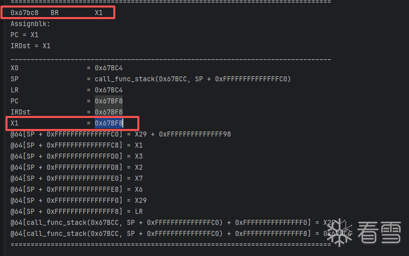 中间表示,这时因为寄存器没有改变,lr的值会被保存,符号会继续执行add的操作,最终会自动得到br x1的地址