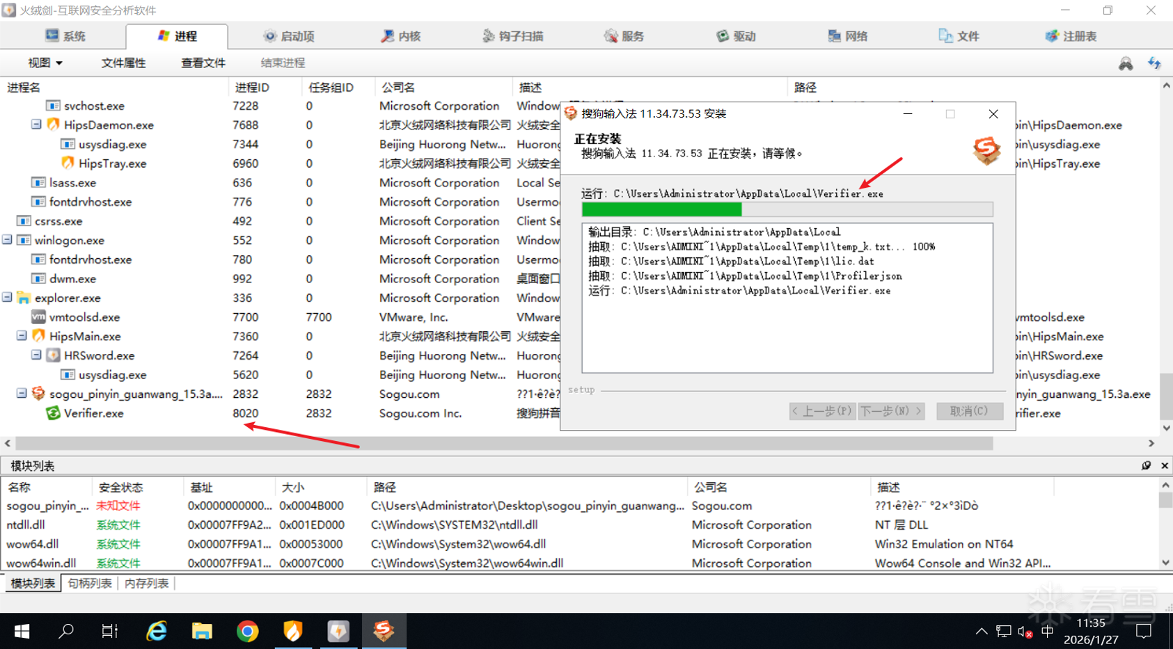样本安装过程中释放文件并拉起程序 Verifier.exe