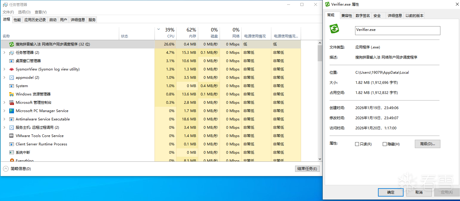 与系统合法进程同名的恶意文件 Verifier.exe 及其关联文件触发杀软告警