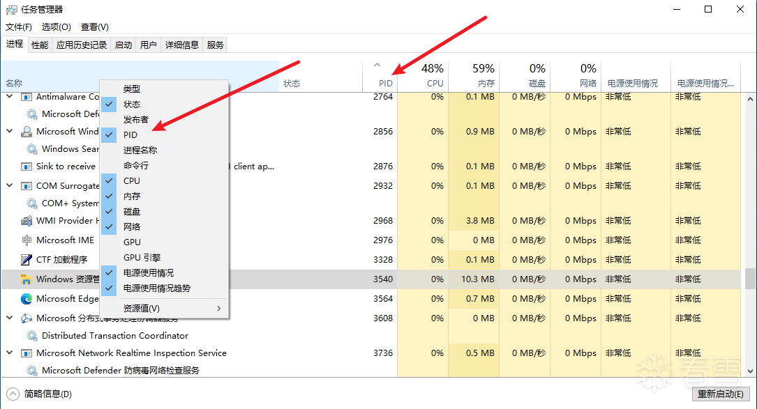 在任务管理器中,勾选“PID”列,找到对应的 ID 右键结束进程。同时结束所有的 Verifier.exe 进程。