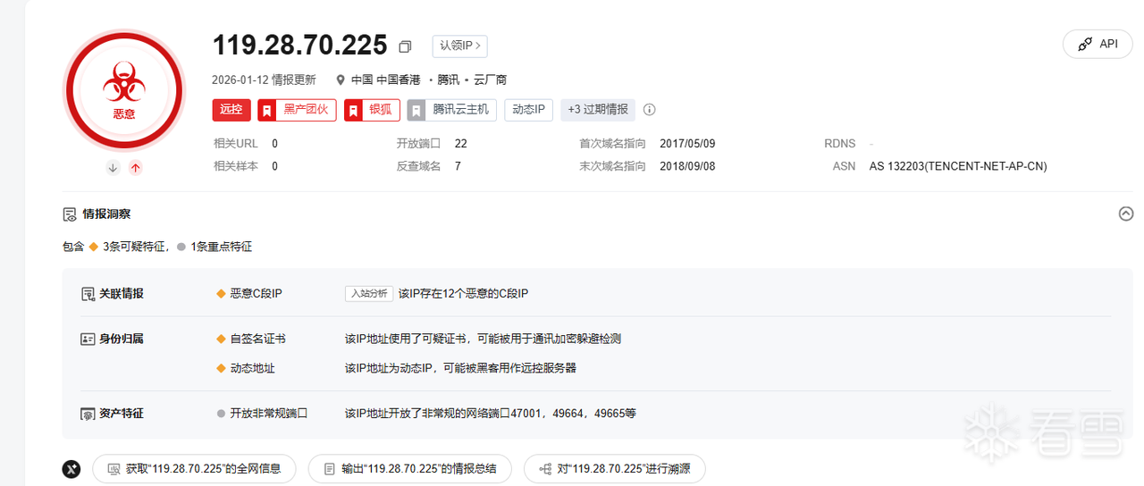 升级 IDS 规则库: 确保安全设备能识别上述 C2 IP 及流量特征。