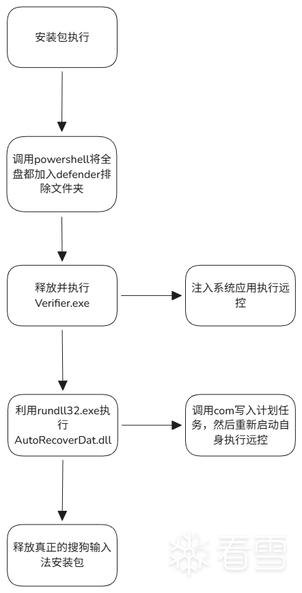 | 6. 掩护行为 | 正常软件安装 | 恶意动作完成后,释放并静默安装真正的搜狗输入法,并在桌面创建快捷方式,使用户误以为仅完成了正常软件安装。 |