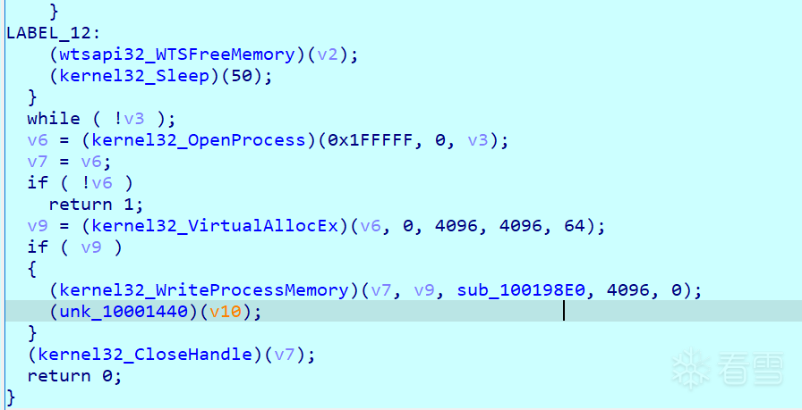 恶意特征:这是典型的进程注入技术,把恶意代码隐藏在合法进程中执行,逃避杀毒软件的进程级检测。