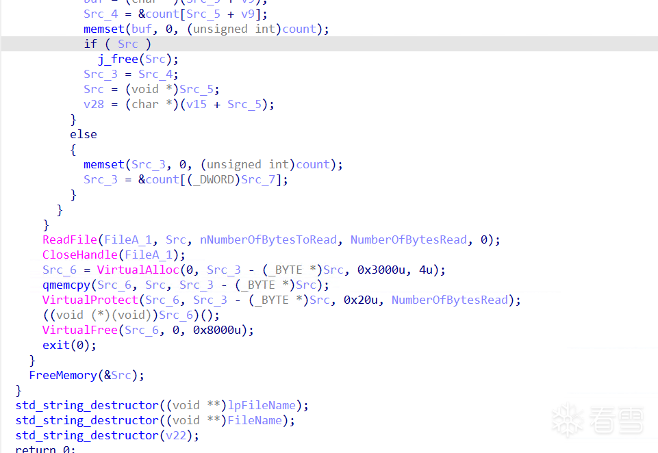 连接建立后,它会接收服务端回传的 Payload,利用 VirtualAlloc 分配内存并直接执行,实现远程控制功能的动态下发。