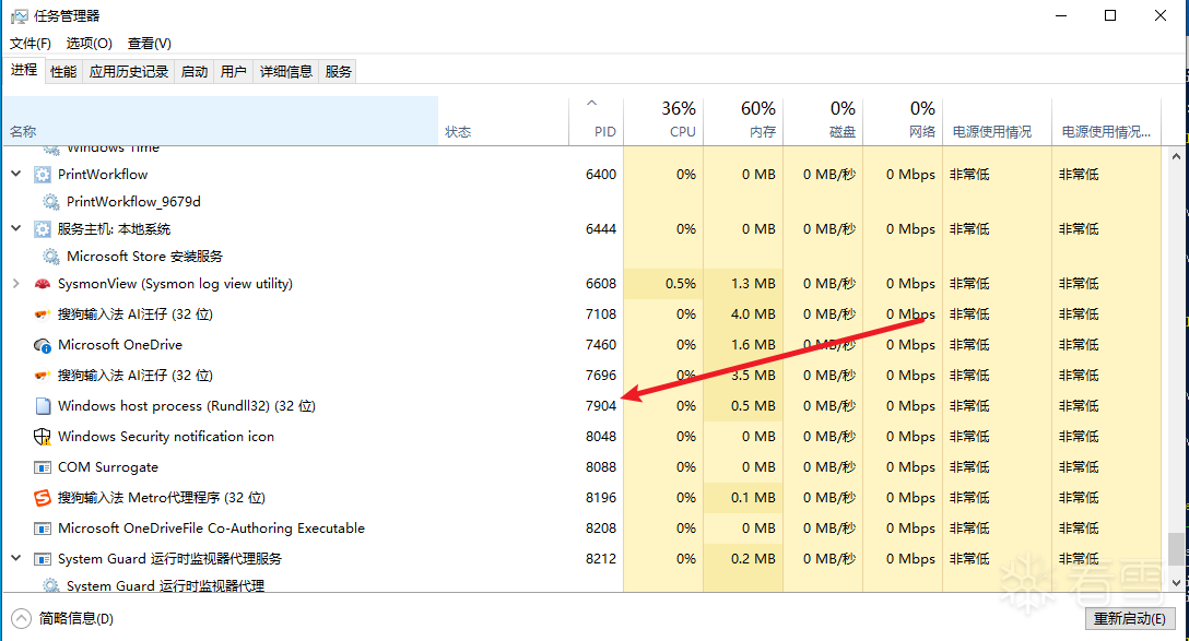 对于 rundll32.exe,使用管理员权限打开 PowerShell,输入以下命令筛选恶意进程 PID:
