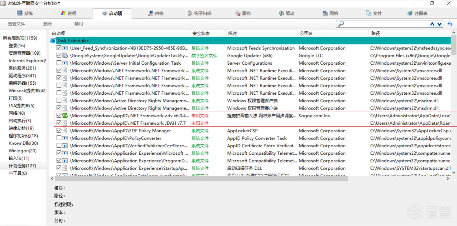 伪装成 .NET Framework 更新的恶意计划任务列表