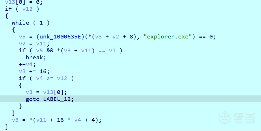核心行为:遍历系统进程列表,精准定位 explorer.exe(桌面进程)的进程 ID(PID)。