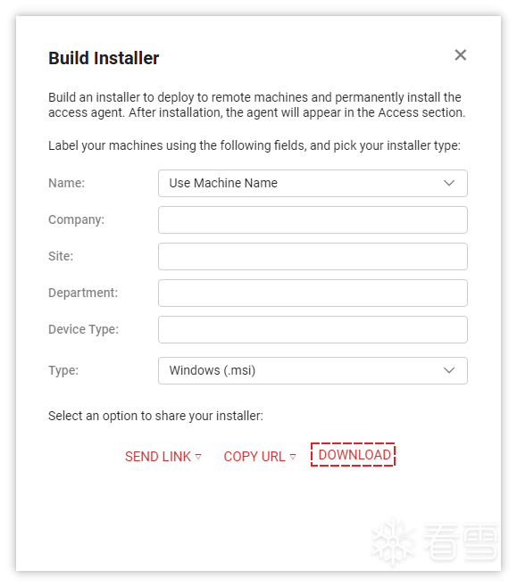 该vcredist_x64.dll文件为ScreenConnect远控工具的MSI安装包,该安装包可通过ScreenConnect服务端Build Installer窗口进行构建,在此时点击DOWNLOAD按钮则可以下载到指向该服务器的ScreenConnect远控工具客户端。