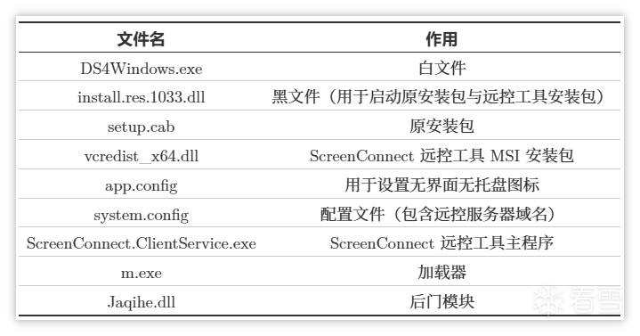随着受害者启动DS4Windows.exe程序,此时会通过DLL侧加载install.res.1033.dll恶意文件,该恶意文件会通过递归搜索当前文件夹,寻找setup.cab与vcredist_x64.dll文件,前者为DS4Windows安装包,后者为ScreenConnect远控工具MSI安装包。随后会分别执行这两个程序,其中会为了防止反复安装ScreenConnect远控工具,会读写注册表键UpdateCheck进行判断。