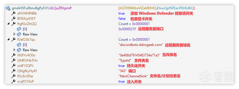 获取远程配置:从远程服务器获取到新的配置,该配置中会有恶意模块的下载链接,配置需要经过解密与反序列化,可以看到此次获取到的配置全是null与false,并未获取到包含恶意模块下载地址的配置。