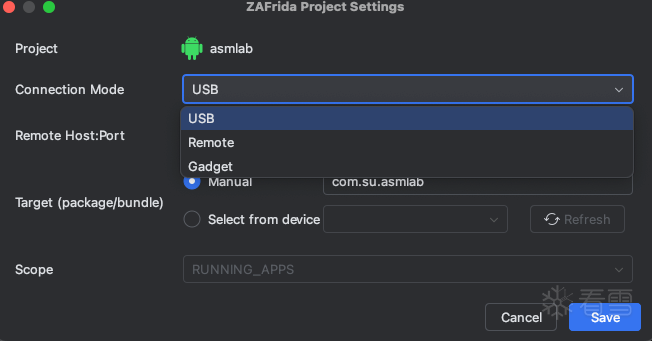 2)进入 ZAFrida ToolWindow(右侧),选择: