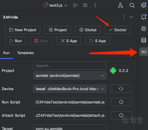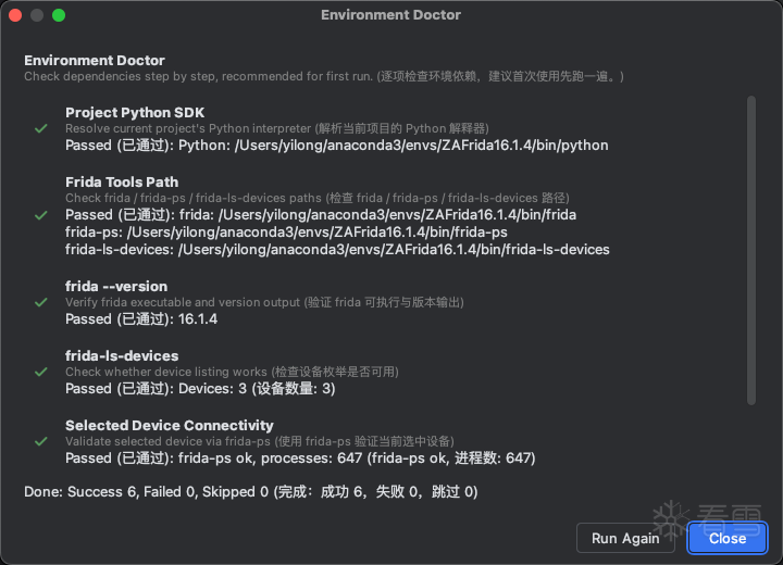 首次打开 ZAFrida ToolWindow 通常会自动弹出 Doctor。