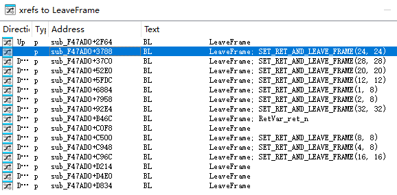 阅读源码case RetVar_ret_n,通过memove交叉引用定位到LeaveFrame():