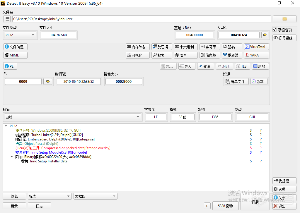 该程序为使用Inno Setup打包的安装程序,如下图所示: