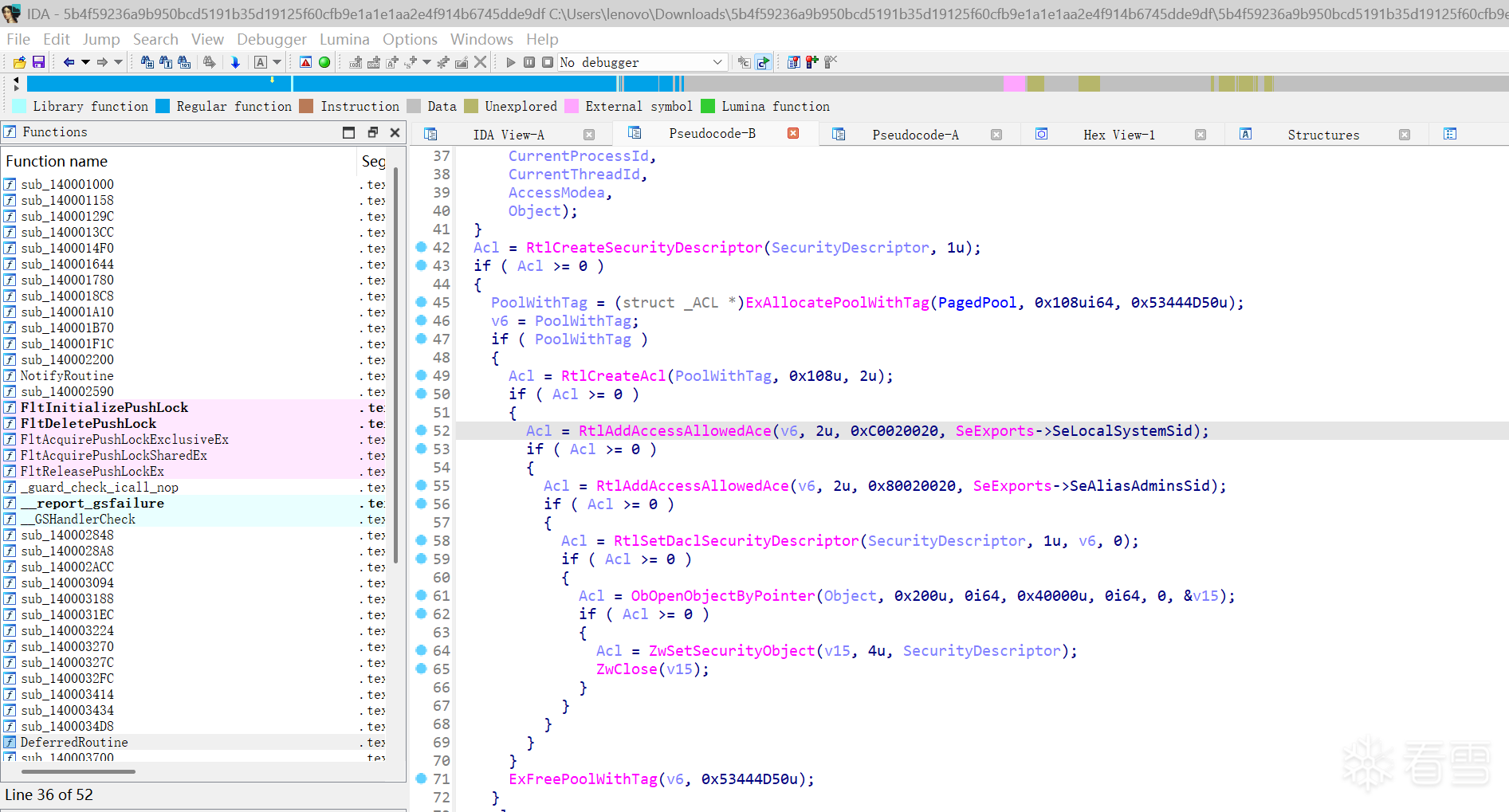 触发Hook NtQuerySystemInformation、NtOpenProcess、 NtDuplicateObject API的调用器(启动器)函数sub_140001940,如下图所示: