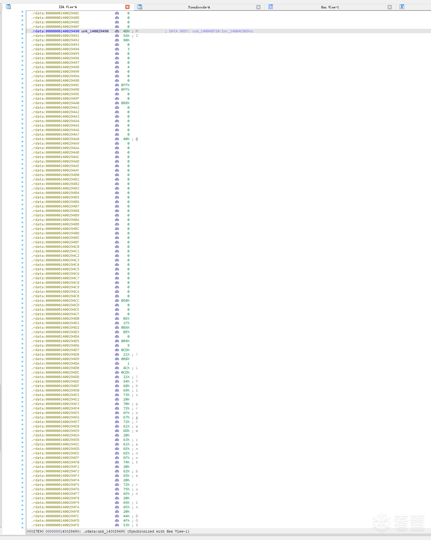 来自&unk_140029490的35400字节的数据(驱动程序文件),具有MZ头和PE头,确认为样本实际释放和加载的STProcessMonitor Driver驱动程序(SHA-256: 70bcec00c215fe52779700f74e9bd669ff836f594df92381cbfb7ee0568e7a8b),如下图所示: