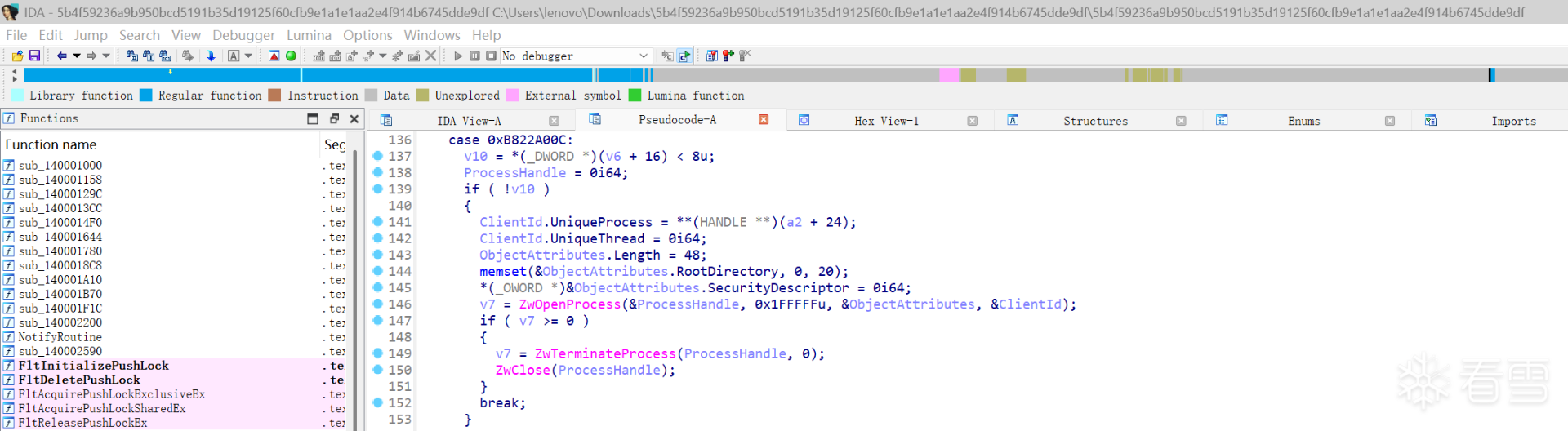 我们接下来查看在STProcessMonitor Driver中,IOCTL 0xB822200C对应的功能,对STProcessMonitor Driver进行分析。