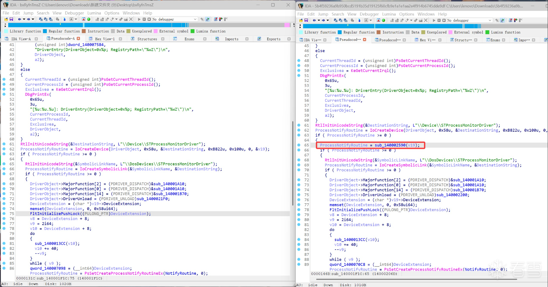 但是本次使用的STProcessMonitor Driver在先前并未使用过,在上述文章中也并未出现,是当前样本新添加的脆弱驱动利用。