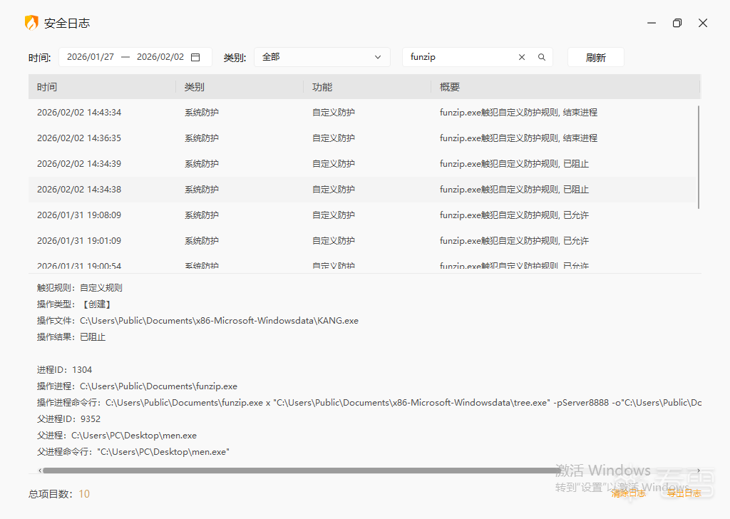 men.exe启动后会拉起C:\Users\Public\Documents\funzip.exe,如下图所示: