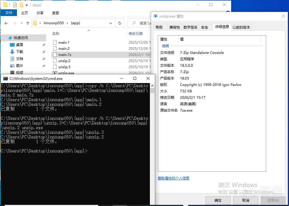第一步,提取安装程序内的应用文件和安装程序内嵌文件