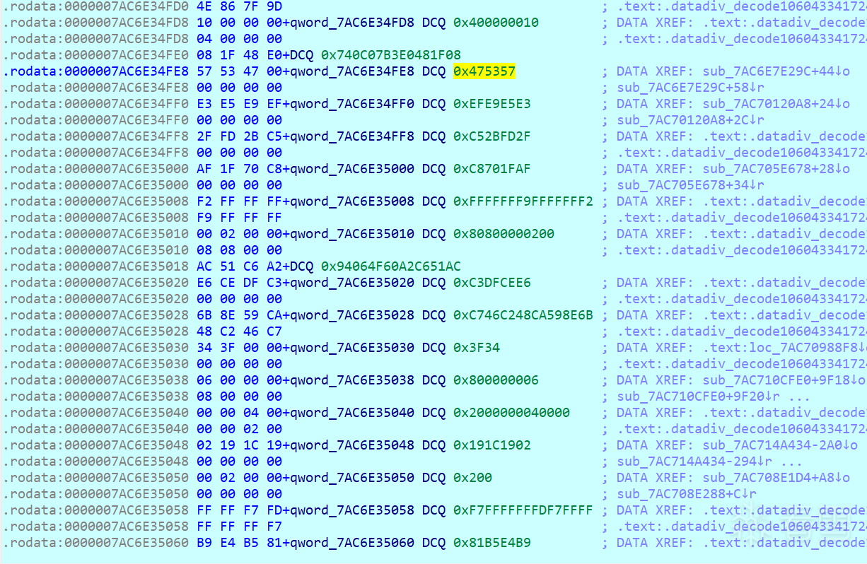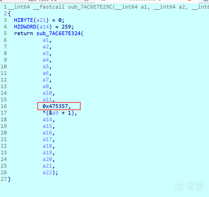 查看上下文,发现此时函数参数 a11 就是 0x475357 标识