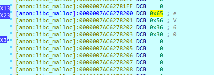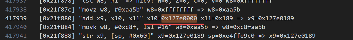 这个地址被引用了很多次,找到最前面,可以定位到偏移 0x21f880, x11 是内存的偏移: