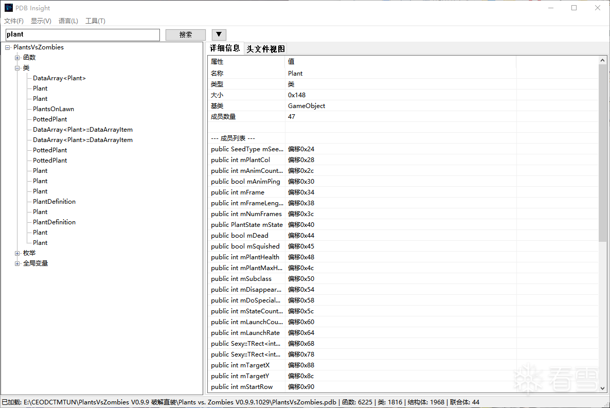 树状视图 - 浏览 PDB 文件中的所有类型、函数、类、结构体、联合体、枚举和全局变量