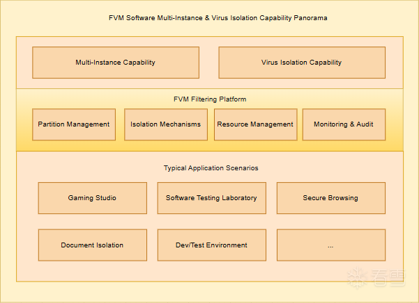 下图简要概述了 FVM软件多开与病毒隔离能力全景图